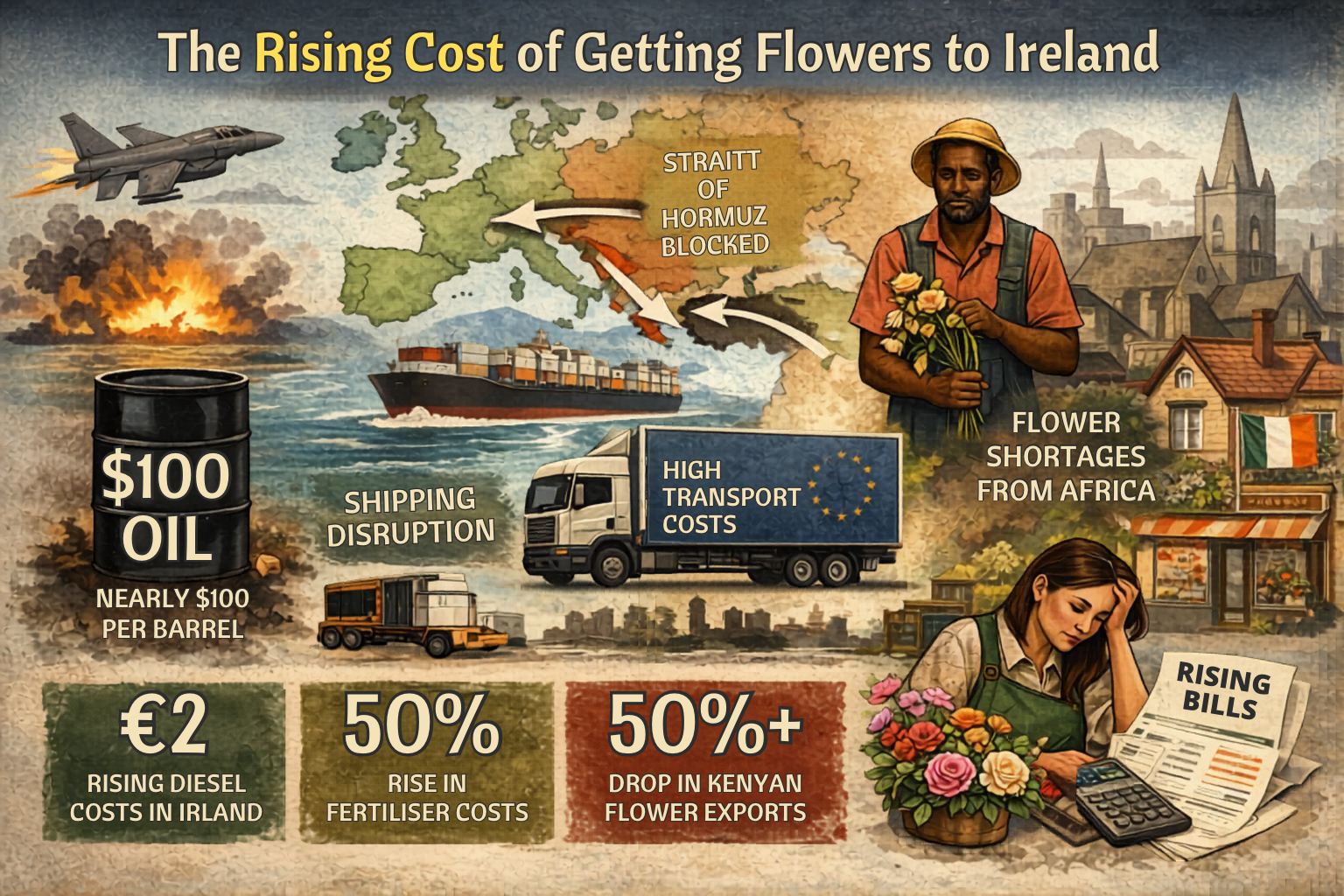 A war in the Middle East, oil at nearly $100 a barrel, and a global shipping crisis are hitting the flower trade hard. Here is what every Irish florist needs to know right now.